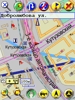 При изменении улицы в реальном маршруте движения, программа вслух проговаривает название новой дороги. В монотонном движении по кольцевым трассам столицы это особенно помогает, тем более можно спокойно отключить подсветку экрана КПК и быть в ожидании нужного поворота.