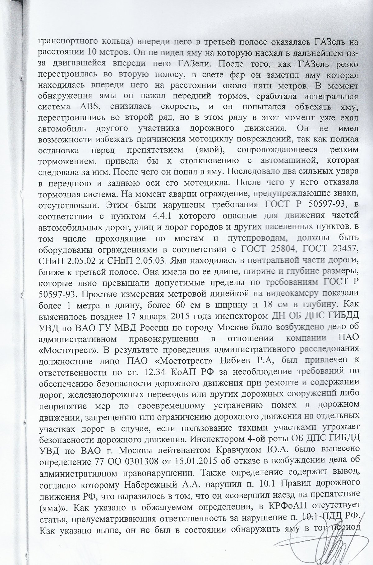 ШАГ 7) Честно говоря, многие юристы рекомендуют пропустить шестой пункт моего алгоритма и в десятидневный срок, после появления «Определения об отказе» при оформлении, обжаловать его сразу в суде. И в моем случае, обращение в ГАИ окончилось отказом. Да, командир четвертой роты оставил меня виновным, но при этом в своем письменном отказе он указал на настоящего виновника ДТП – компанию «Мостотрест». Более того, за мою яму ГАИшники оштрафовали инженера Набиева Р.А. на 2000 рублей. И теперь стало понятно кого звать на экспертизу, да и кому иск предъявлять хотя бы по компенсационной схеме 50% на 50%.